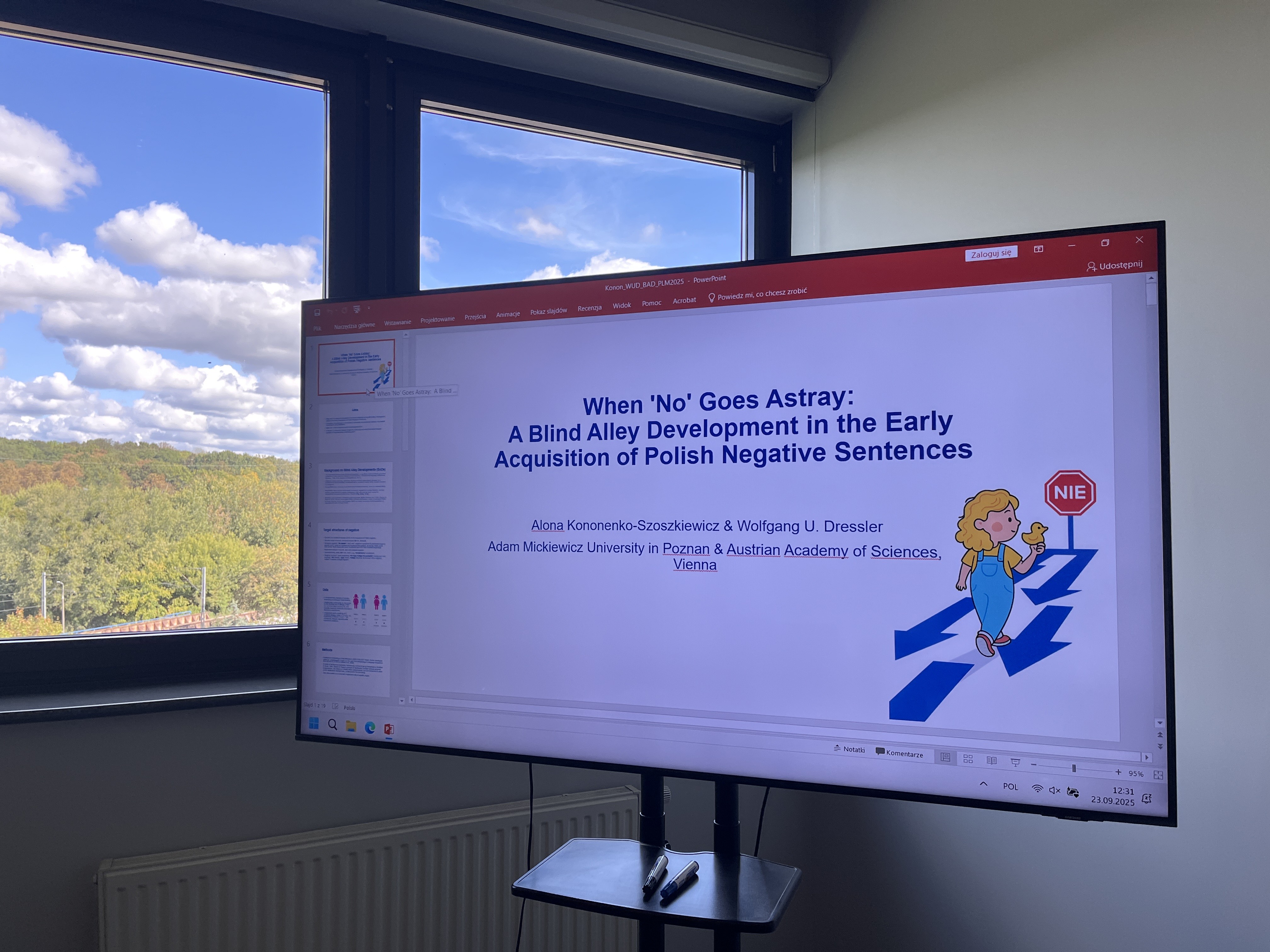 📝 I had the opportunity to present our joint study with W. U. Dressler, “When ‘No’ Goes Astray: A Blind Alley Development in the Early Acquisition of Polish Negative Sentences”, at the 53rd Poznań Linguistic Meeting (PLM2025). Check a snapshot from the session.